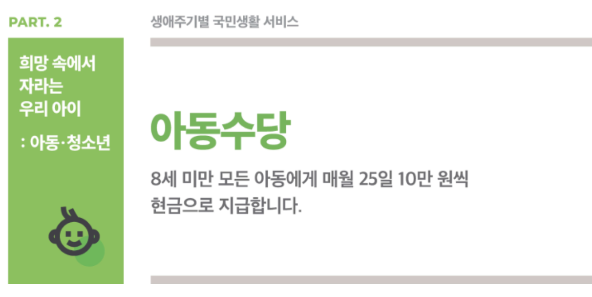 아동수당은 만 8세 미만 아동에게 매달 일정 금액을 현금으로 지원해주는 정부 복지 정책이에요.