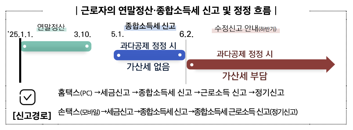 따라서, 올해 연말정산에서 소득공제를 누락했거나, 의료비나 기부금 공제 내역이 빠졌다면 반드시 5월 중으로 홈택스를 통해 신고해야 합니다.