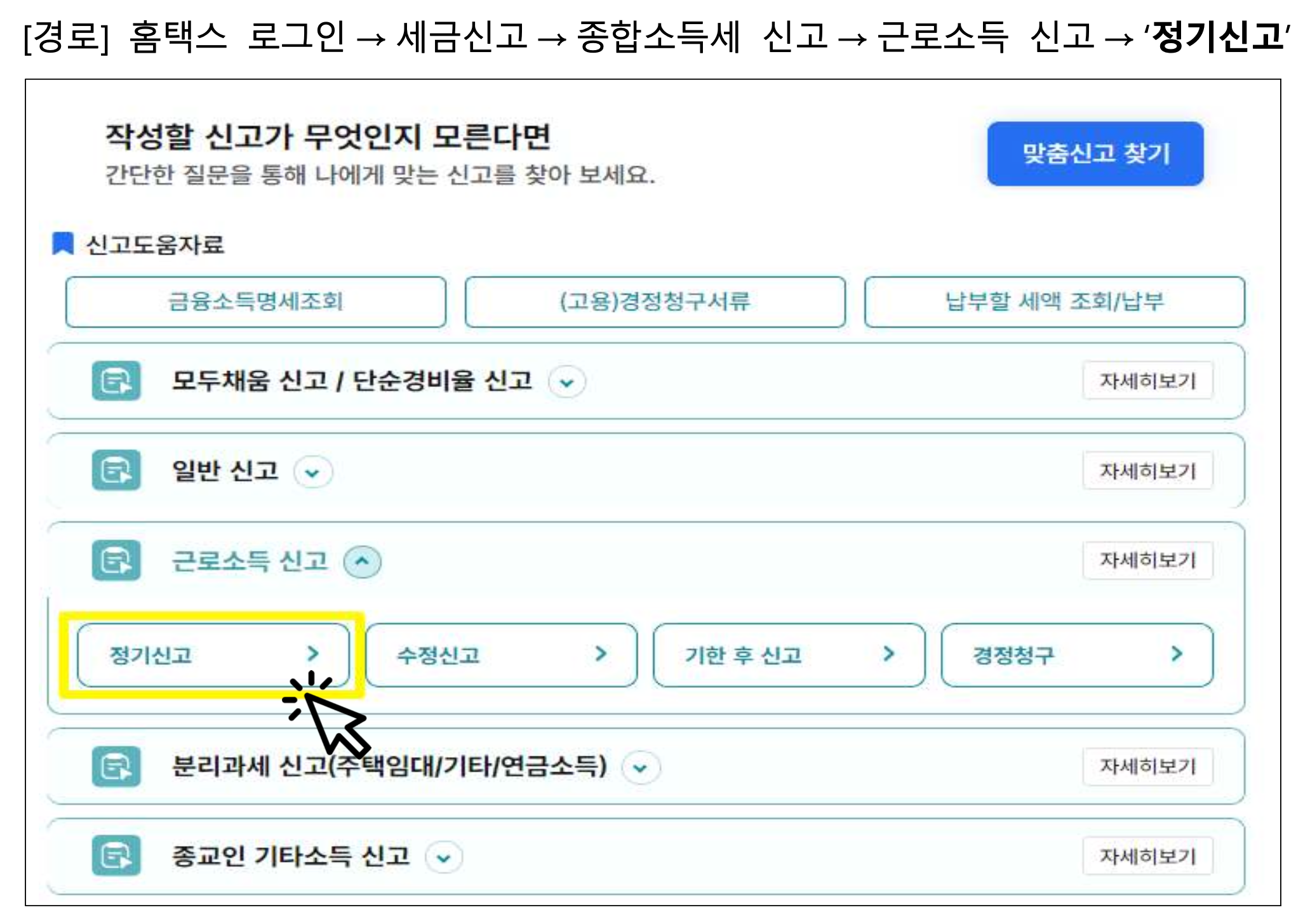 - [종합소득세 → 정정신고] 메뉴 선택