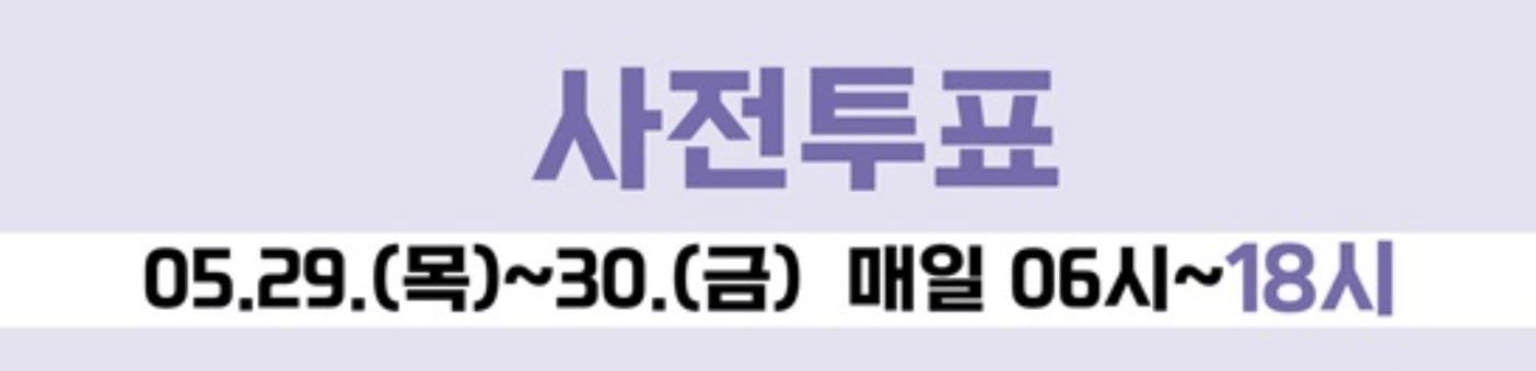 사전투표는 본 선거일에 투표가 어려운 유권자를 위한 제도로, 5월 29일(목)부터 30일(금)까지 양일간 오전 6시부터 오후 6시까지 진행됩니다.