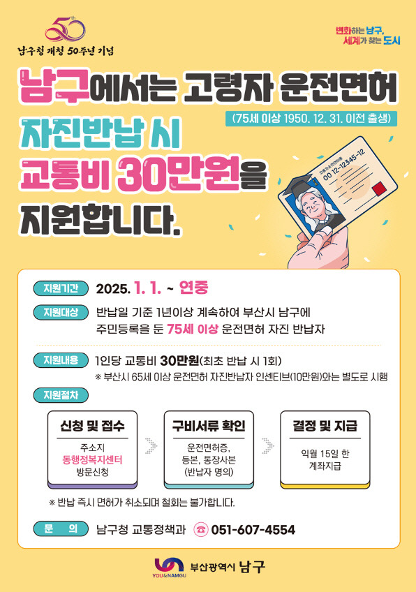 고령 운전자가 운전 능력 저하, 건강 문제, 노안 등으로 인한 위험을 인식하고 스스로 운전면허를 반납하는 제도입니다. 자진 반납 시, 각 지자체에서 지원금을 제공하거나 교통카드, 택시 할인권 등의 실질적인 혜택을 제공합니다.