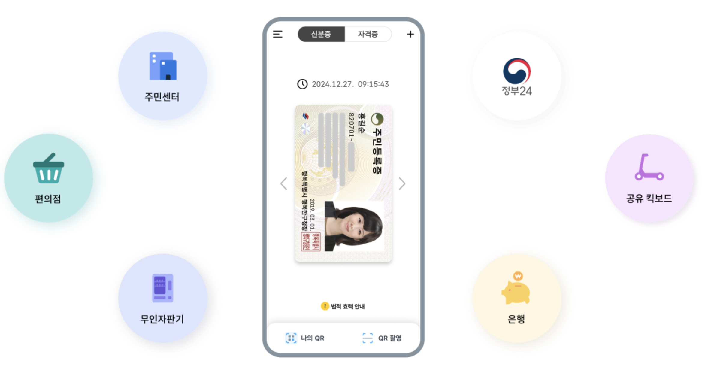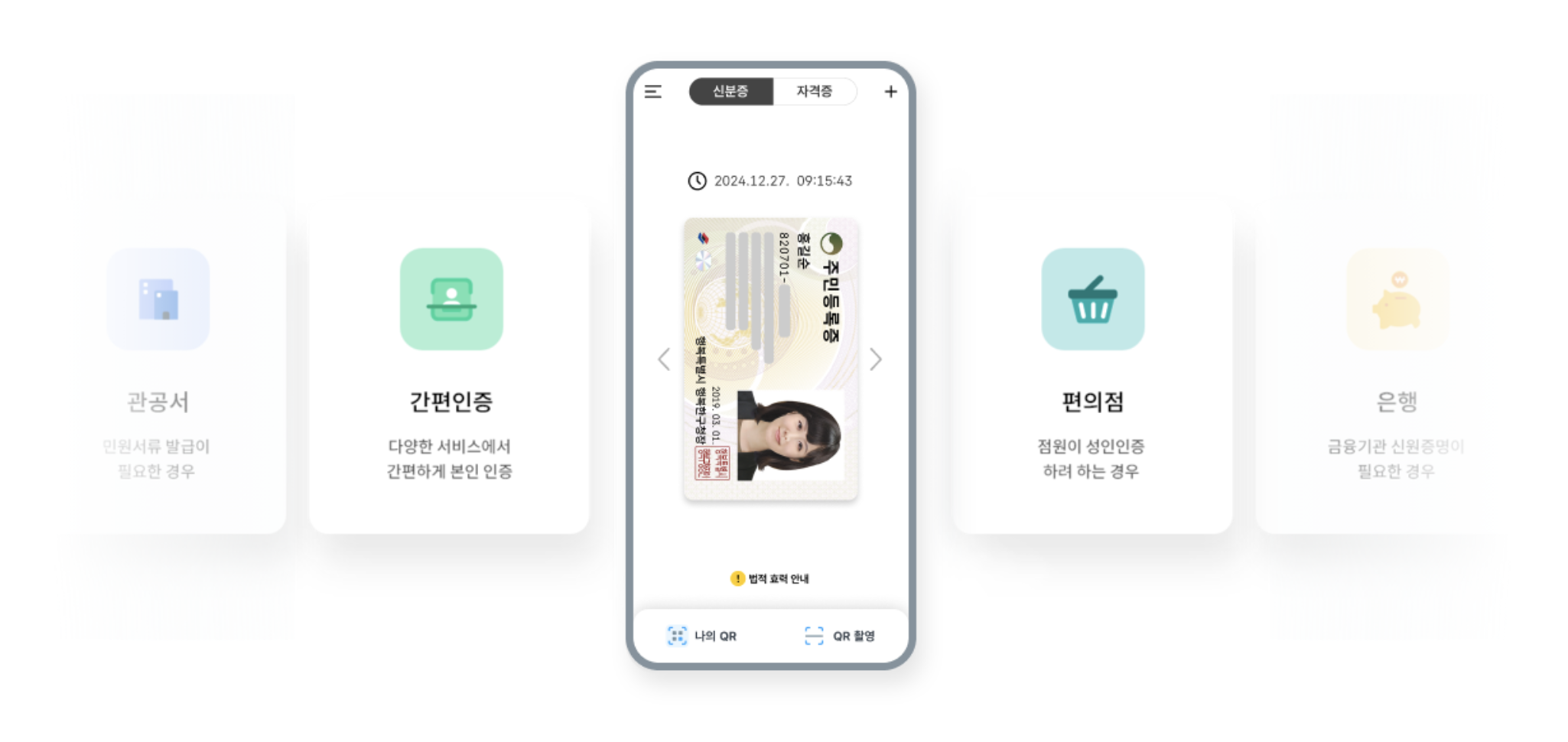 정부24, 은행, 병원, 공공기관 등에서 사용 가능하며, 휴대성과 보안성을 동시에 갖춘 차세대 신분 확인 수단입니다.