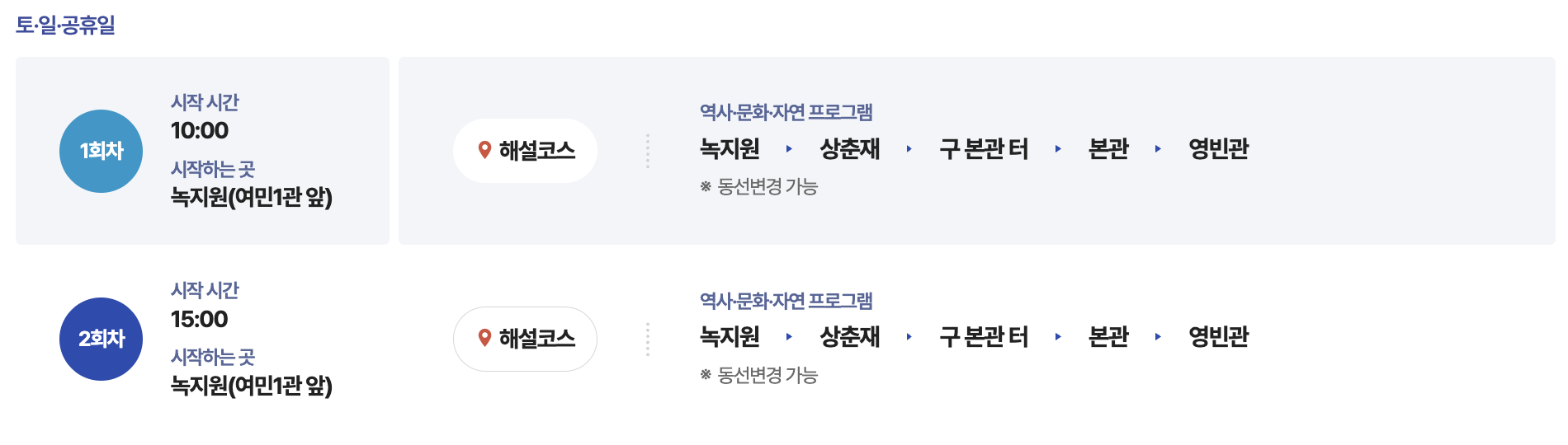 - 운영 일정: 관람 회차별로 현장에서 안내되며, 정해진 장소에서 집결 후 해설이 시작됩니다.