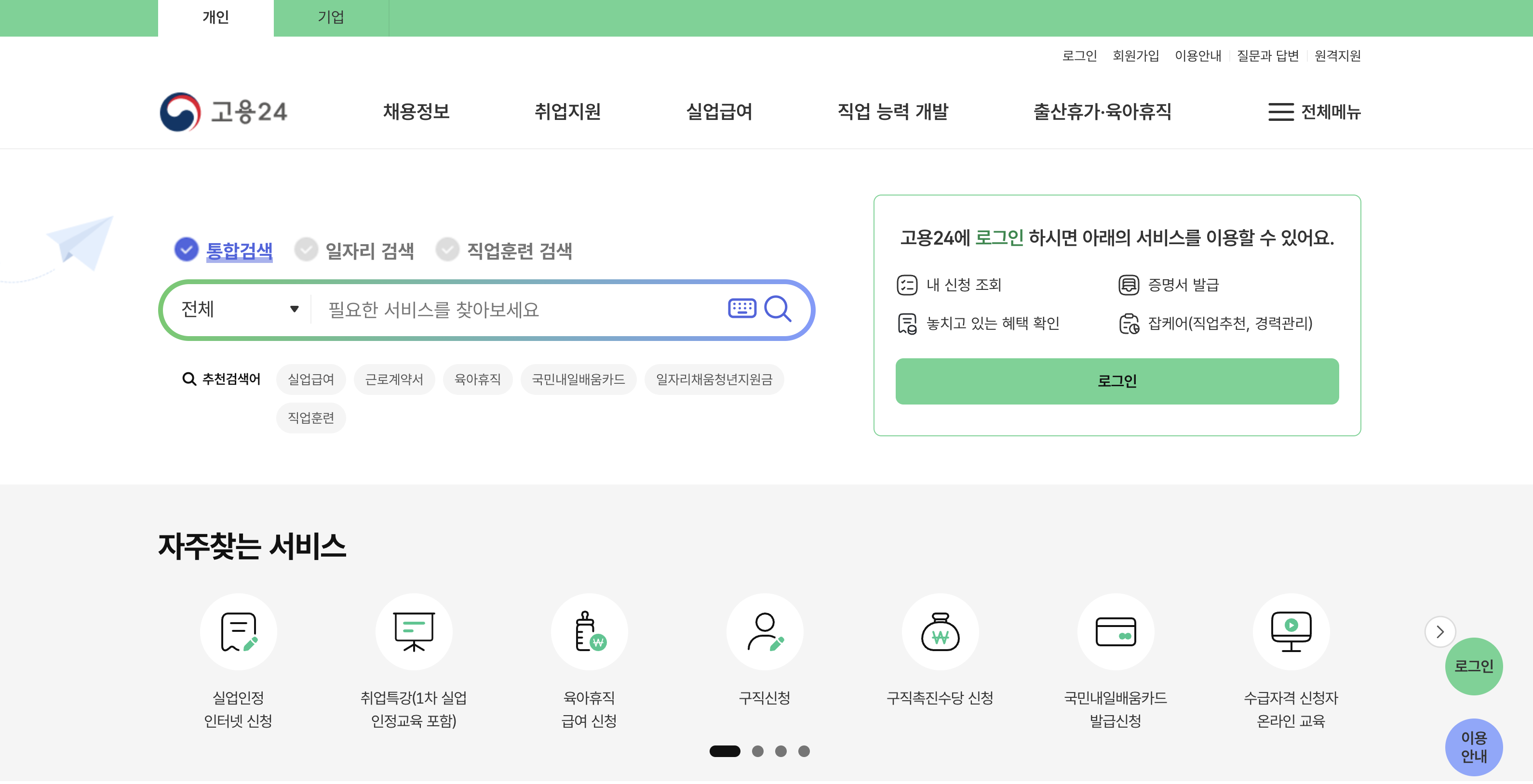 - 구직신청: 고용24를 통해 구직신청을 합니다.