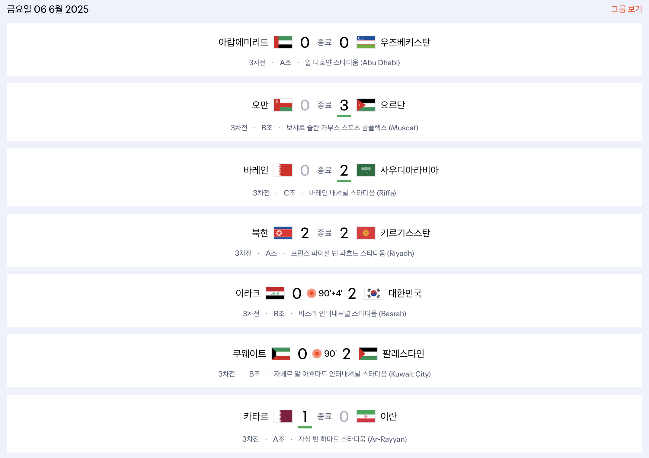 🇰🇷 대한민국 3차 예선 경기 결과 요약