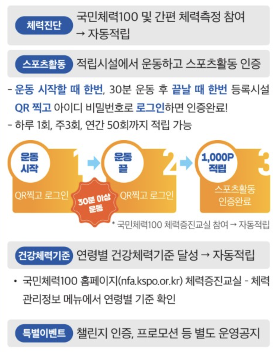 - 📌 회원 가입: 국민체력100 홈페이지 신규 가입 시 1,000P