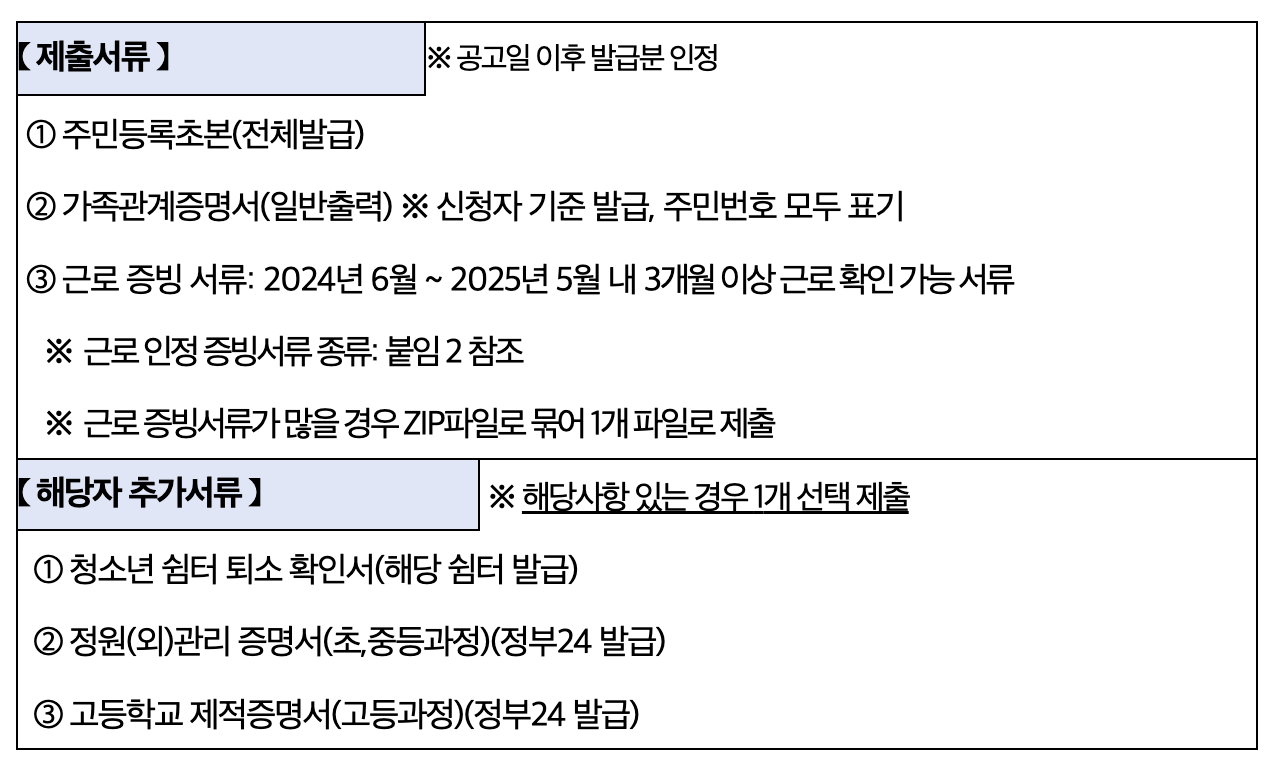 - 구비서류: 주민등록등본, 근로 증빙자료, 소득 확인 서류 등