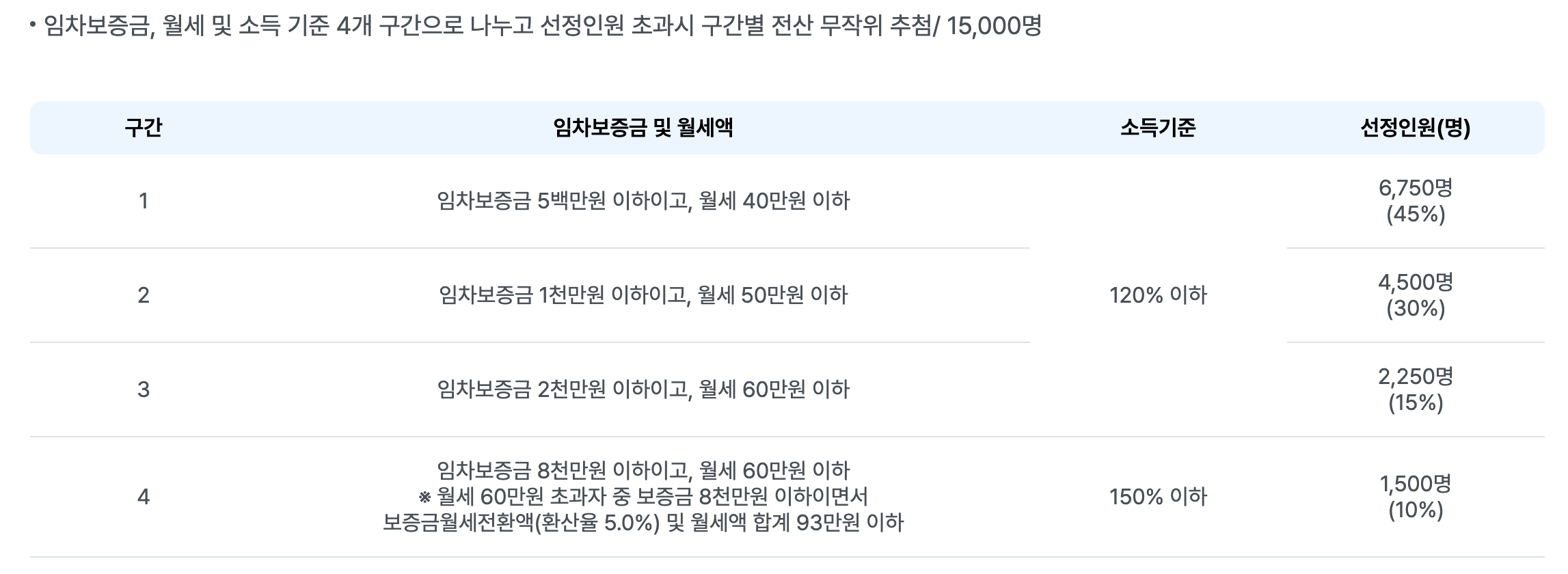 - 임대료: 월세 60만 원 이하 (보증금 5천만 원 이하 주거)