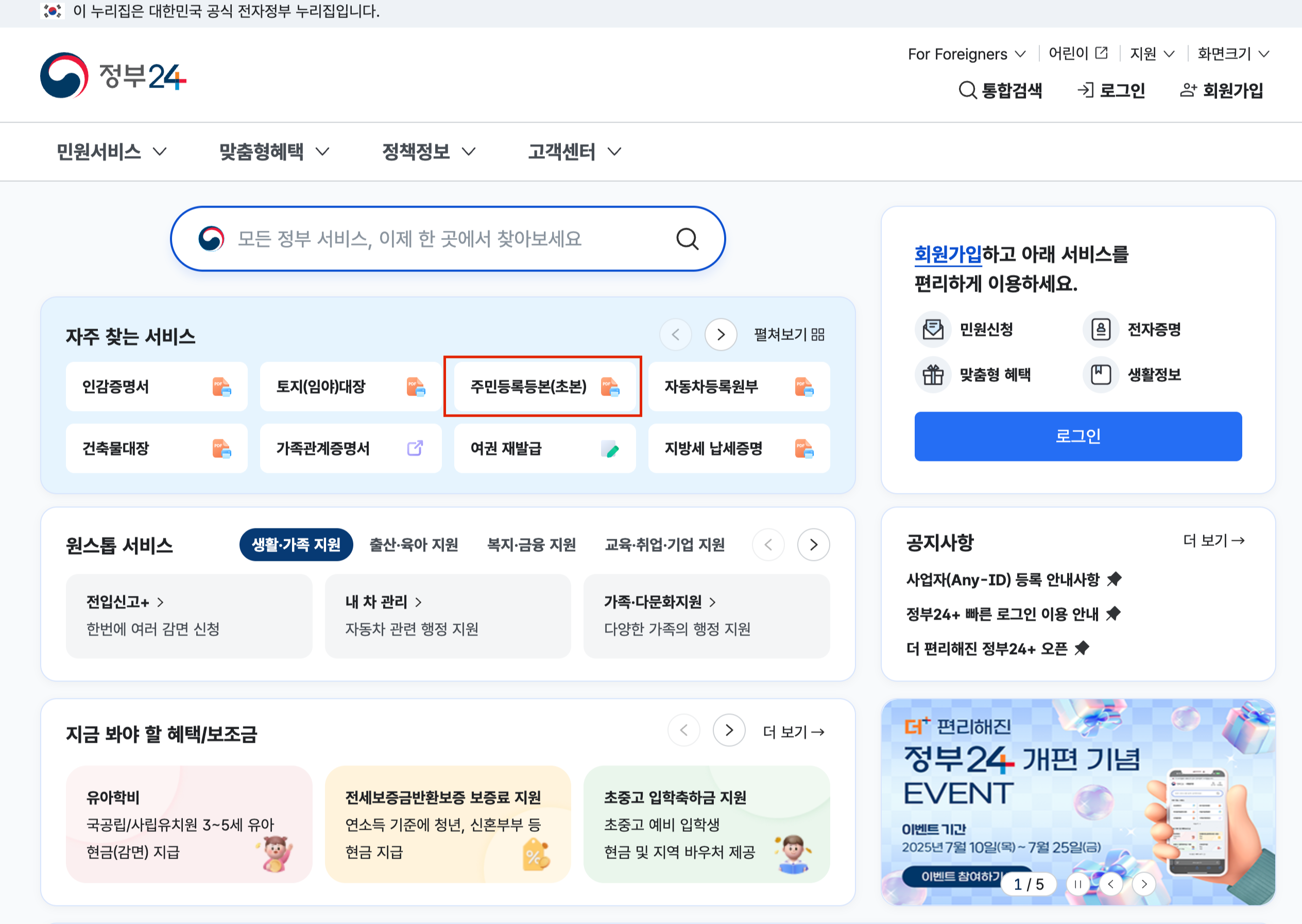 📢 주민등록등본·초본, 무료로 받을 수 있어요!