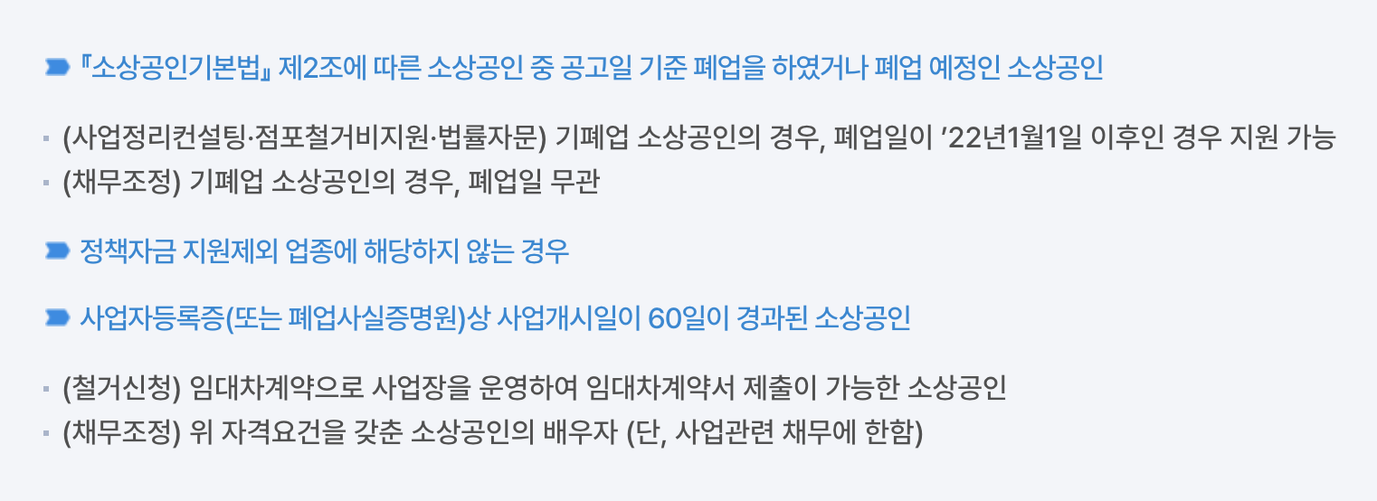 사업정리컨설팅, 점포철거지원, 법률자문, 채무조정을 한 번에 받을 수 있습니다.