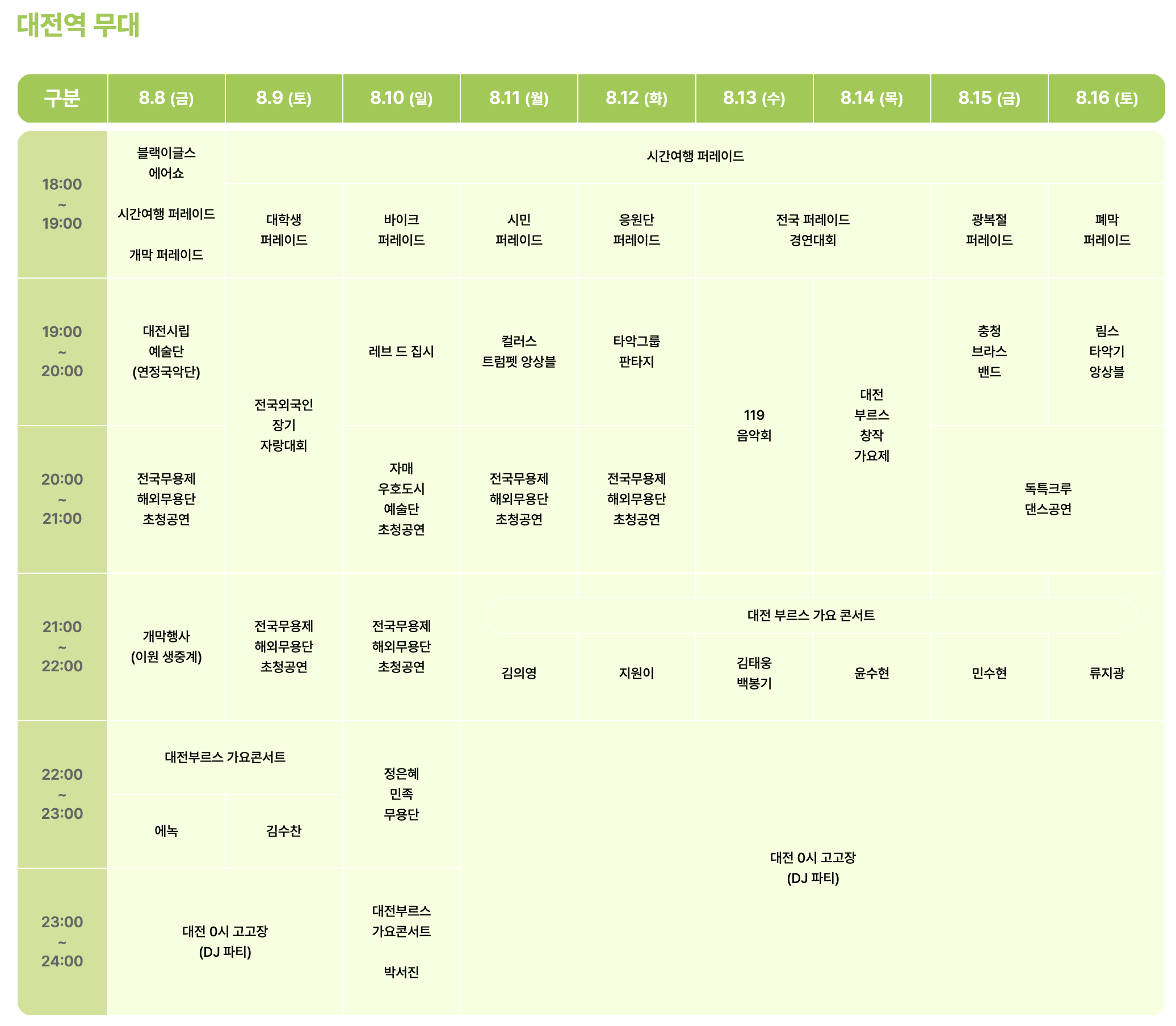 2025 대전 0시 축제 일정